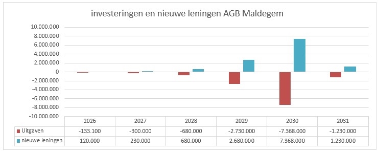 De investeringen worden gefinancierd door toegestane leningen gekregen van de gemeente Maldegem. De aflossingstermijn wordt afgestemd op de afschrijvingsduur van de investeringen.