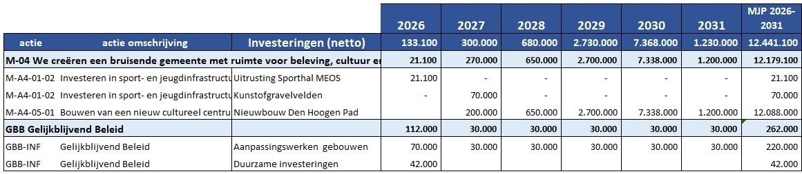 Overzicht investeringen