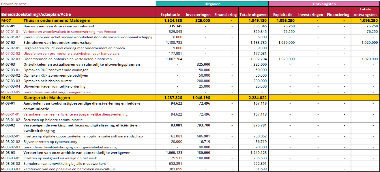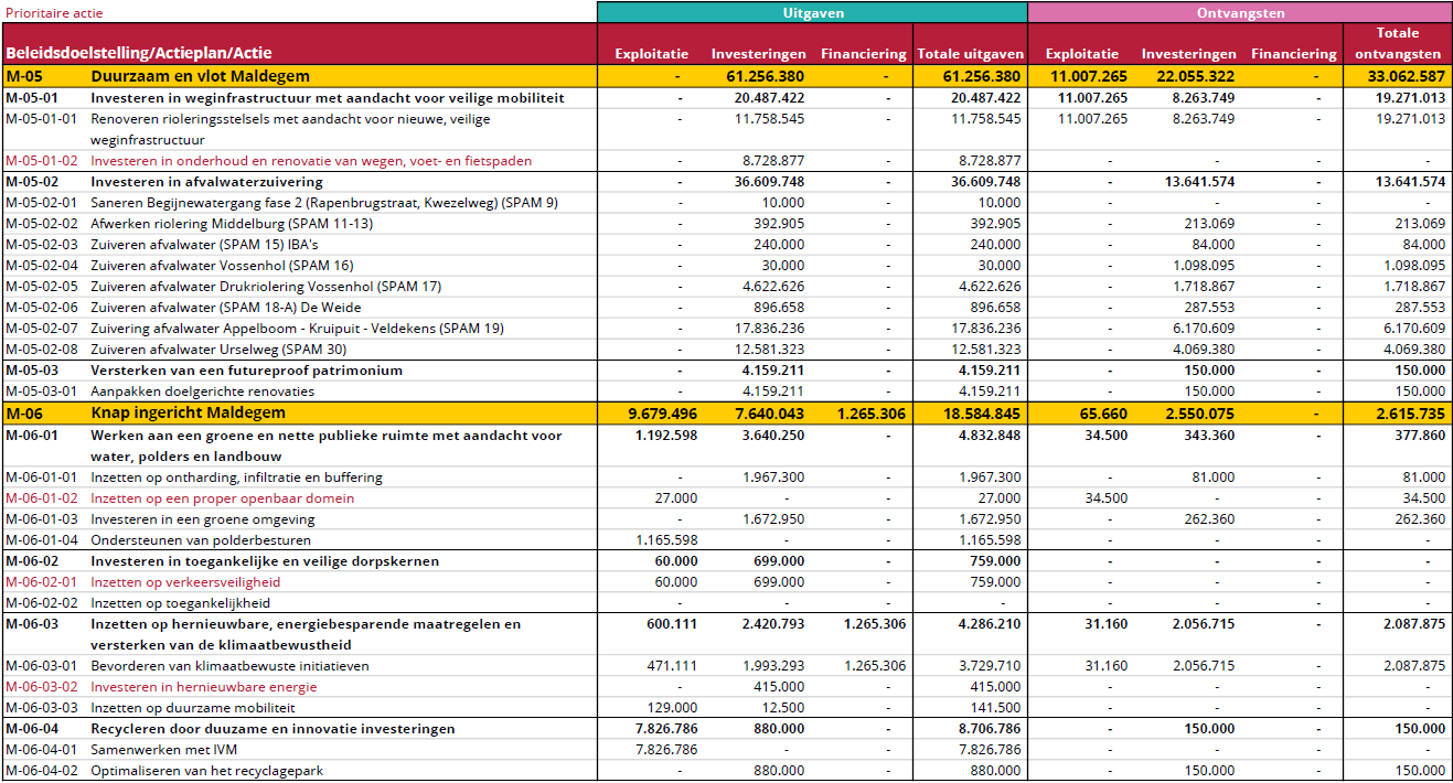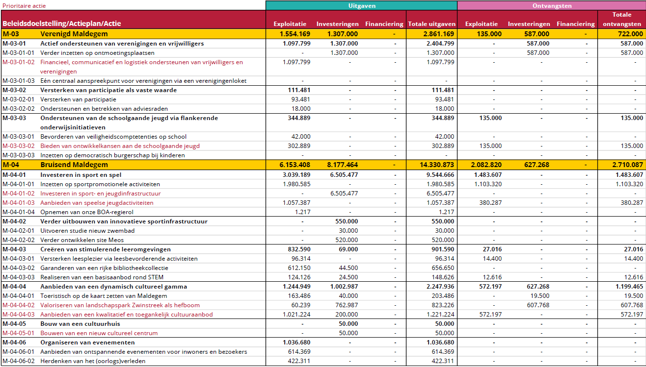 Overzicht van alle beleidsdoelstellingen, actieplannen en acties die opgenomen zijn in het meerjarenplan, met de bijbehorende ramingen van uitgaven en ontvangsten. zoals geraamd voor alle jaren samen.