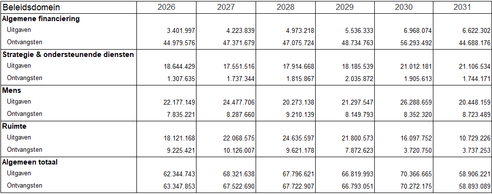 Overzicht ontvangsten en uitgaven - functioneel (T1)