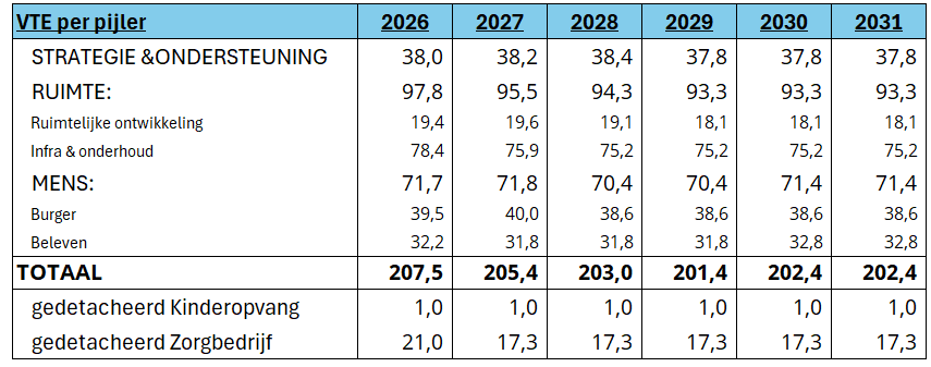 Overzicht personeelsinzet per pijler in voltijdse equivalenten (VTE)Terug naar navigatie - Overzicht personeelsinzet - Overzicht personeelsinzet per pijler in voltijdse equivalenten (VTE) Er wordt toelichting gegeven bij deze cijfers in het onderdeel grondslagen en assumpties.