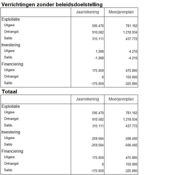 De cijfers opgenomen in de kolom meerjarenplan (=budget) zijn deze volgens laatst goedgekeurde kredietverschuivingen. De kolom jaarrekening betreft het totaal van gerealiseerde uitgaven en ontvangsten, geboekt tot en met augustus.