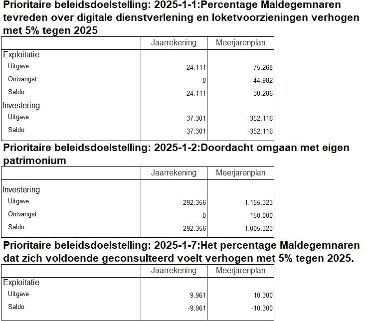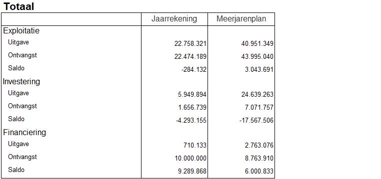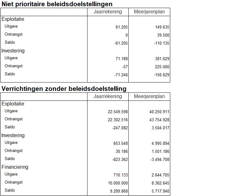 De cijfers opgenomen in de kolom meerjarenplan (=budget) zijn deze volgens laatst goedgekeurde kredietverschuivingen.